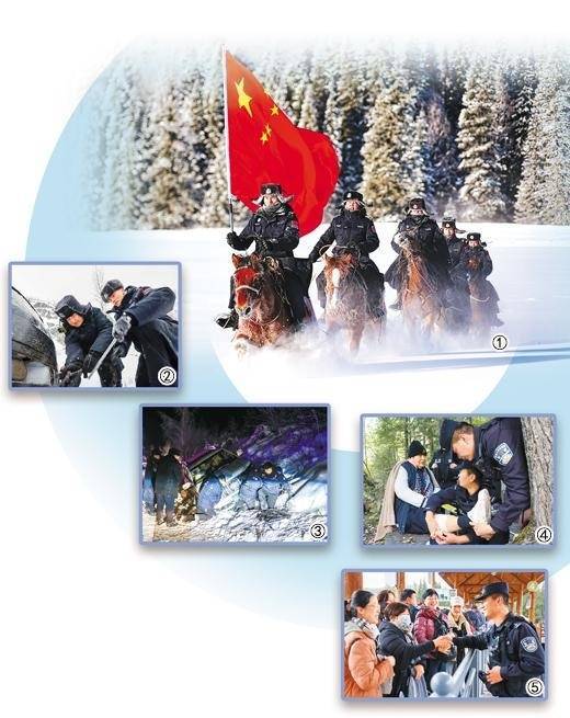 图①:喀纳斯边境派出所民警正在骑马奉行巡逻任务。本报记者 李亚楠摄