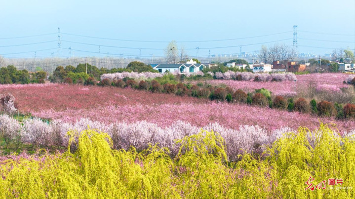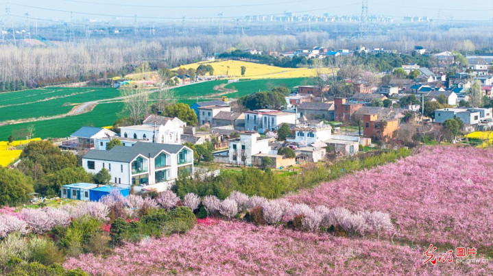 2026年3月27日,安徽合肥庐阳区三十岗乡崔岗艺术村春色满园世博体育app下载,金黄油菜花与粉艳桃花秩序绽放,漫山花海与乡村民居意思横生,绘就一幅象征的春日野外画卷。当地以“赏花经济”为握手,激活乡村旅游活力,助力乡村振兴。(赵明摄/光明图片)