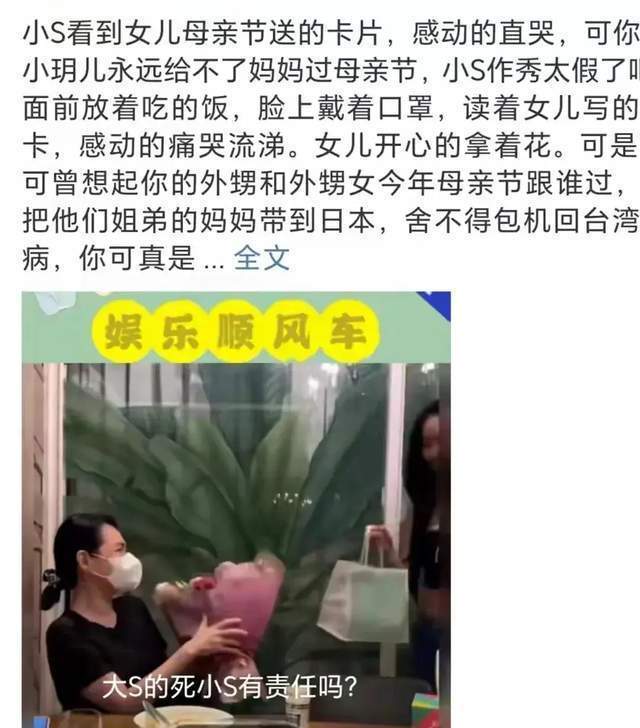 另一边,S妈(黄春梅)在酬酢平台晒出母亲节今日一家东谈主积攒的画面。从合照中看,小玥儿也在,还有具俊晔。