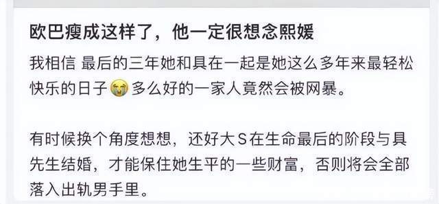 大S短暂的离世,关于具俊晔来说是广泛的横祸。大S与具俊晔这一段片时的婚配,刚运行是感奋幸福的,在家里把尿,喂饭,你侬我侬。万万莫得思到,临了是以悲催达成。